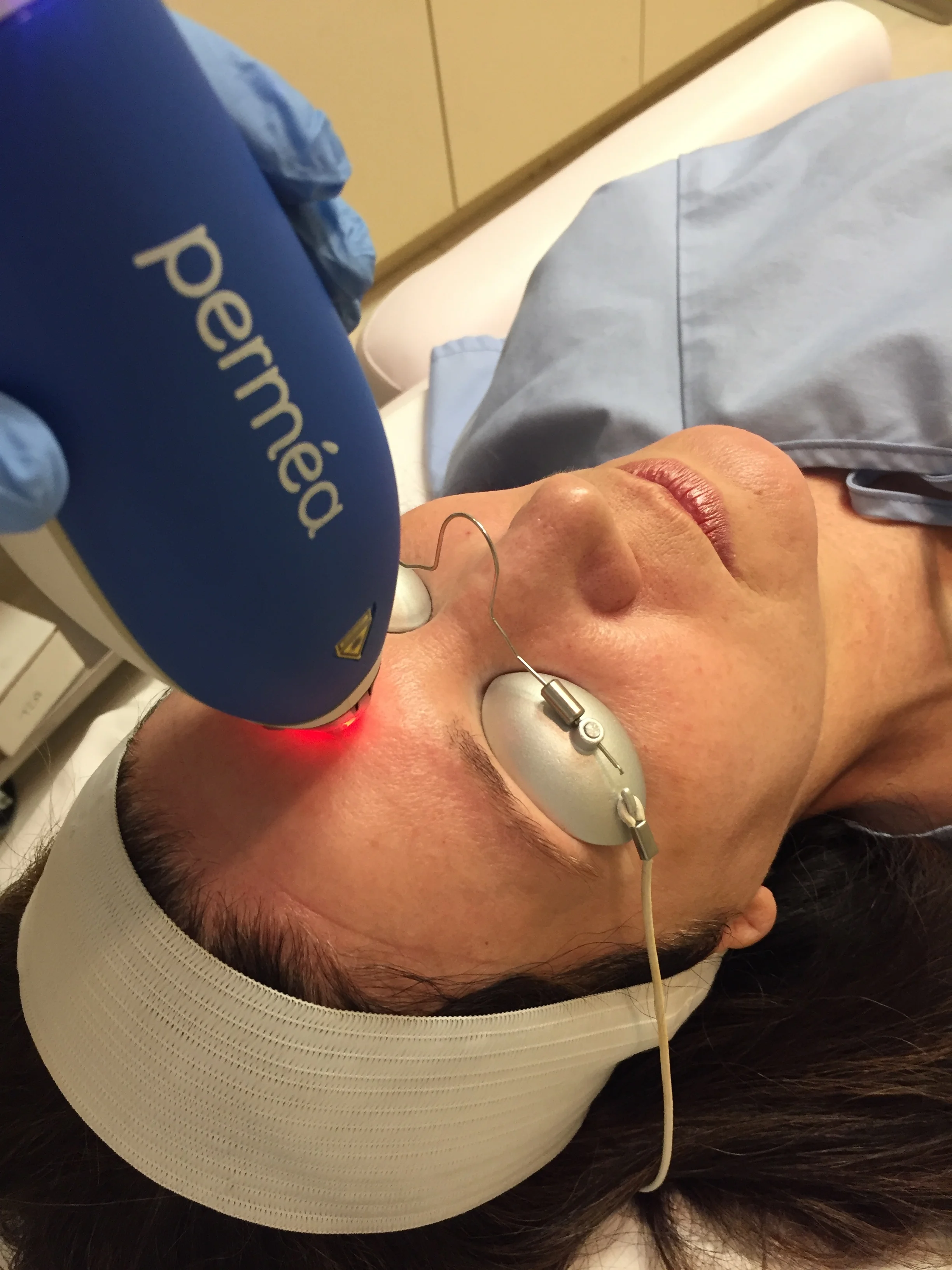 - Non-ablative (i.e. doesn’t remove the top layer of skin) fractional infrared diode laser that is gentle on the skin.